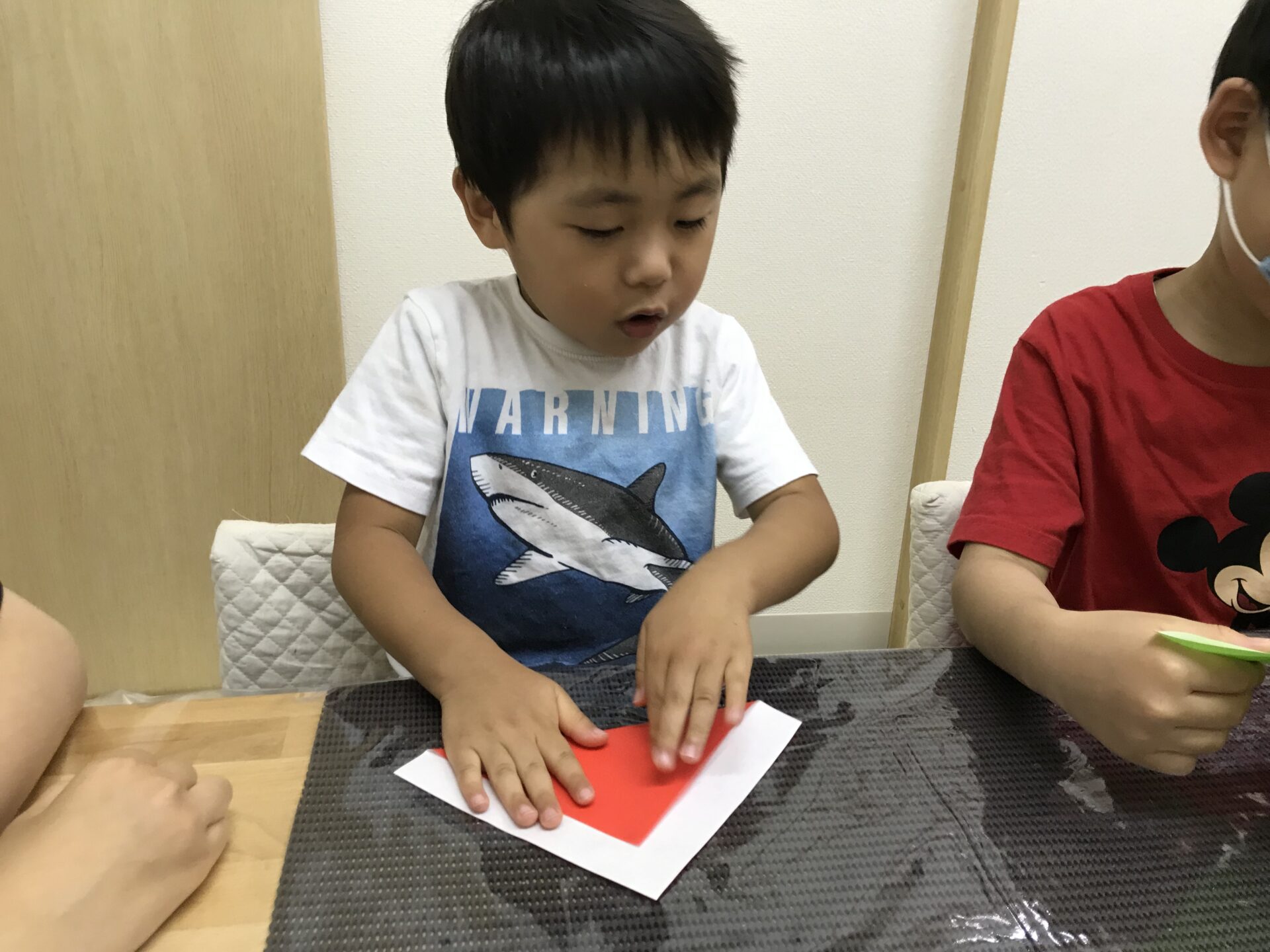 貝つなぎ、天の川、提灯はハサミで線の上を切ったり、