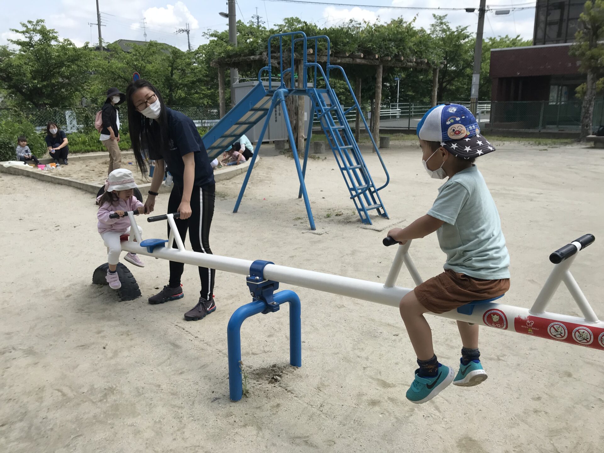 「こうえんであそぼう」カードを見ながら固定遊具や