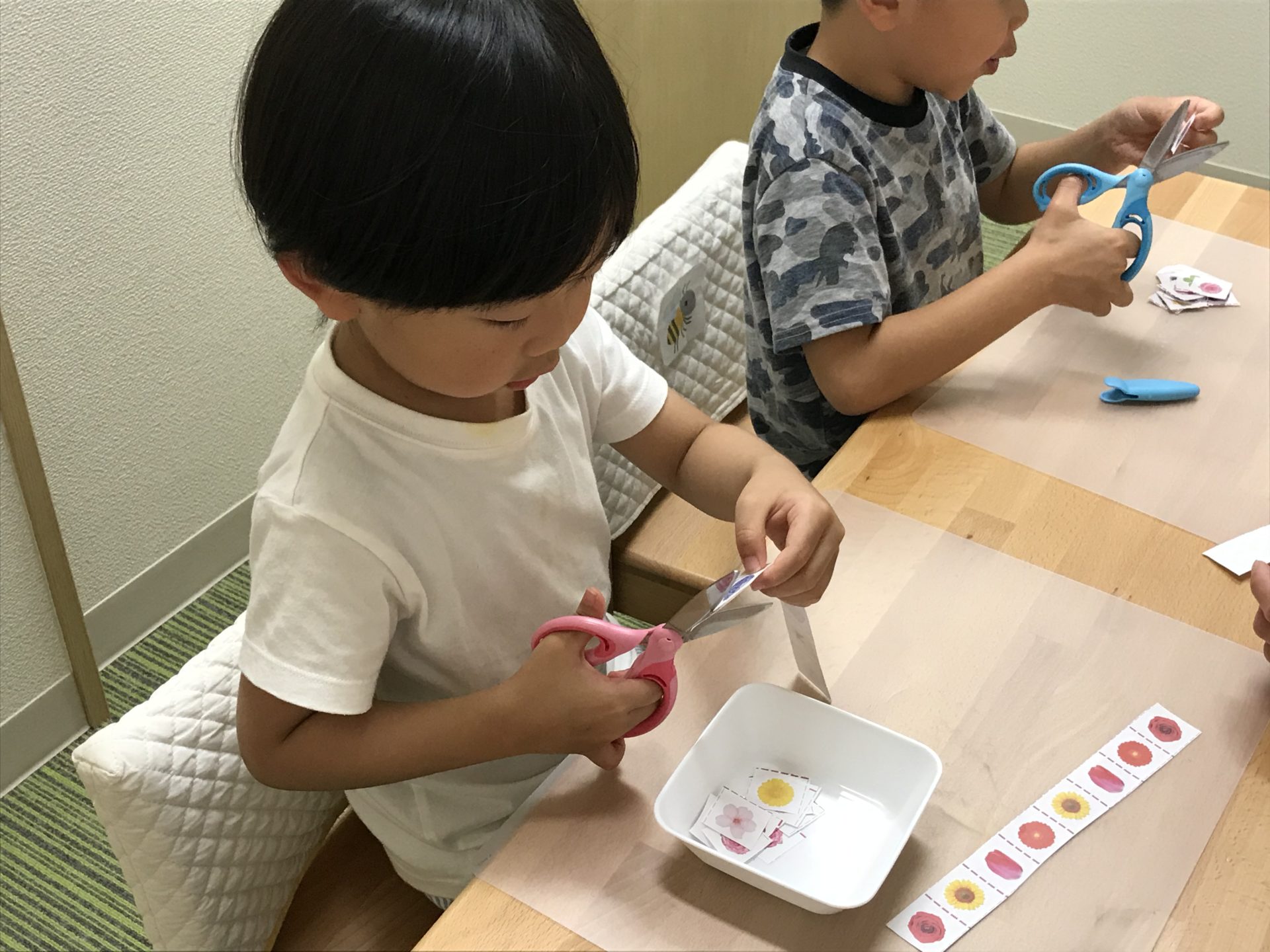 点線に沿って紙を切り、はさみを送る動作のあとは