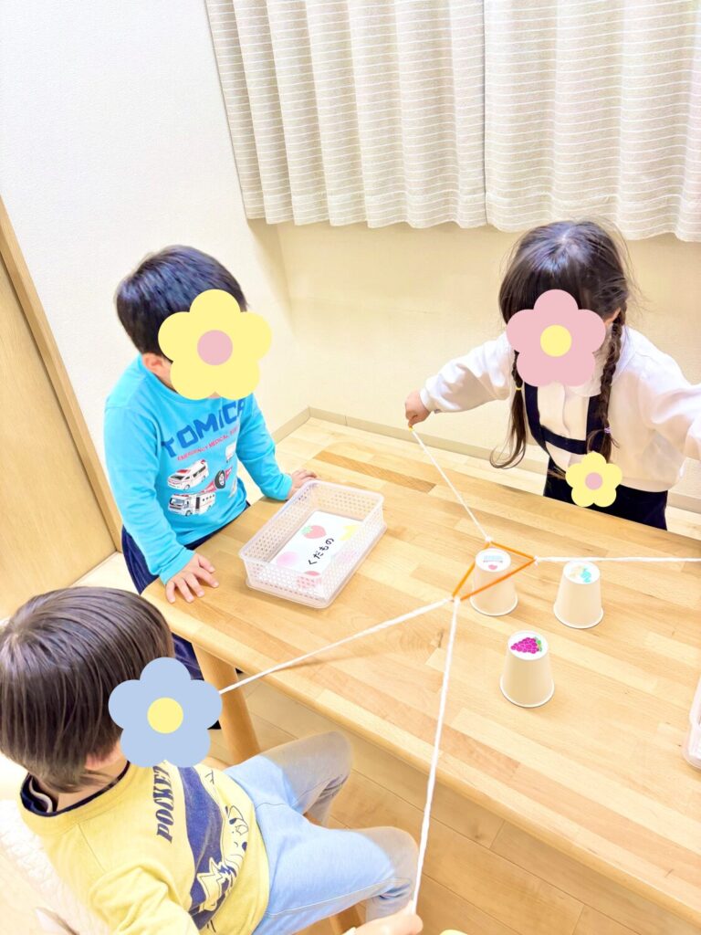 なかよしコースでは、お友だちと力を合わせて楽しむ「クレーンゲーム」に挑戦しました。ひもを引っ張って真ん中のゴムを広げ、紙コップをそっとつかんでカゴの中に落とします🎯紙コップにはイラストや数字が書かれており、種類ごとに分けてカゴに入... -